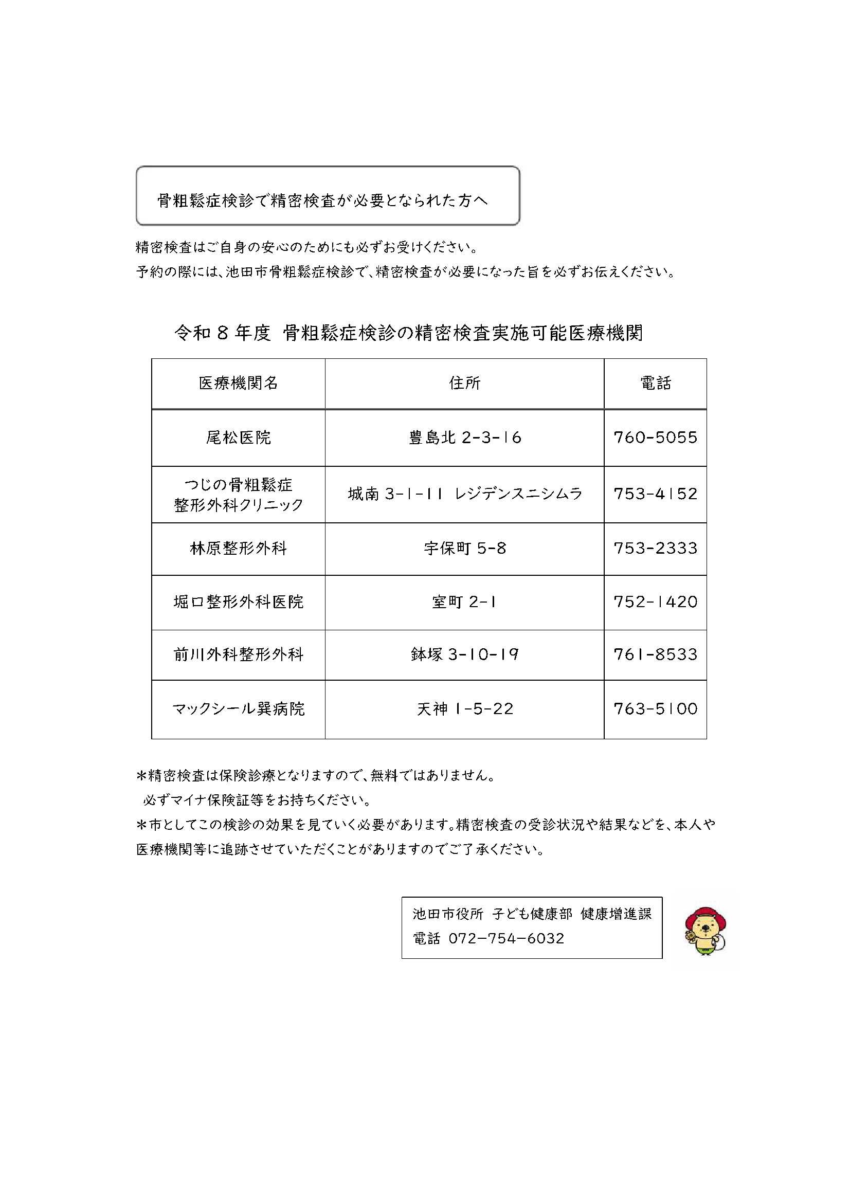 骨粗鬆症検診を受診され、精密検査が必要となられた方へ